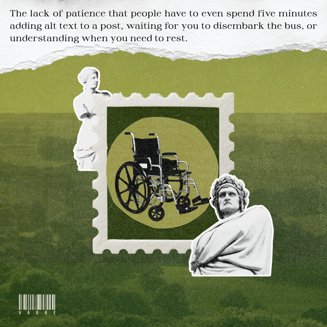 VAGUE Resident Daisy reports live from the V&A’s Design and Disability exhibition exploring design history through the lens of Disabled, Deaf, and neurodivergent creatives. Part One: a little patience.